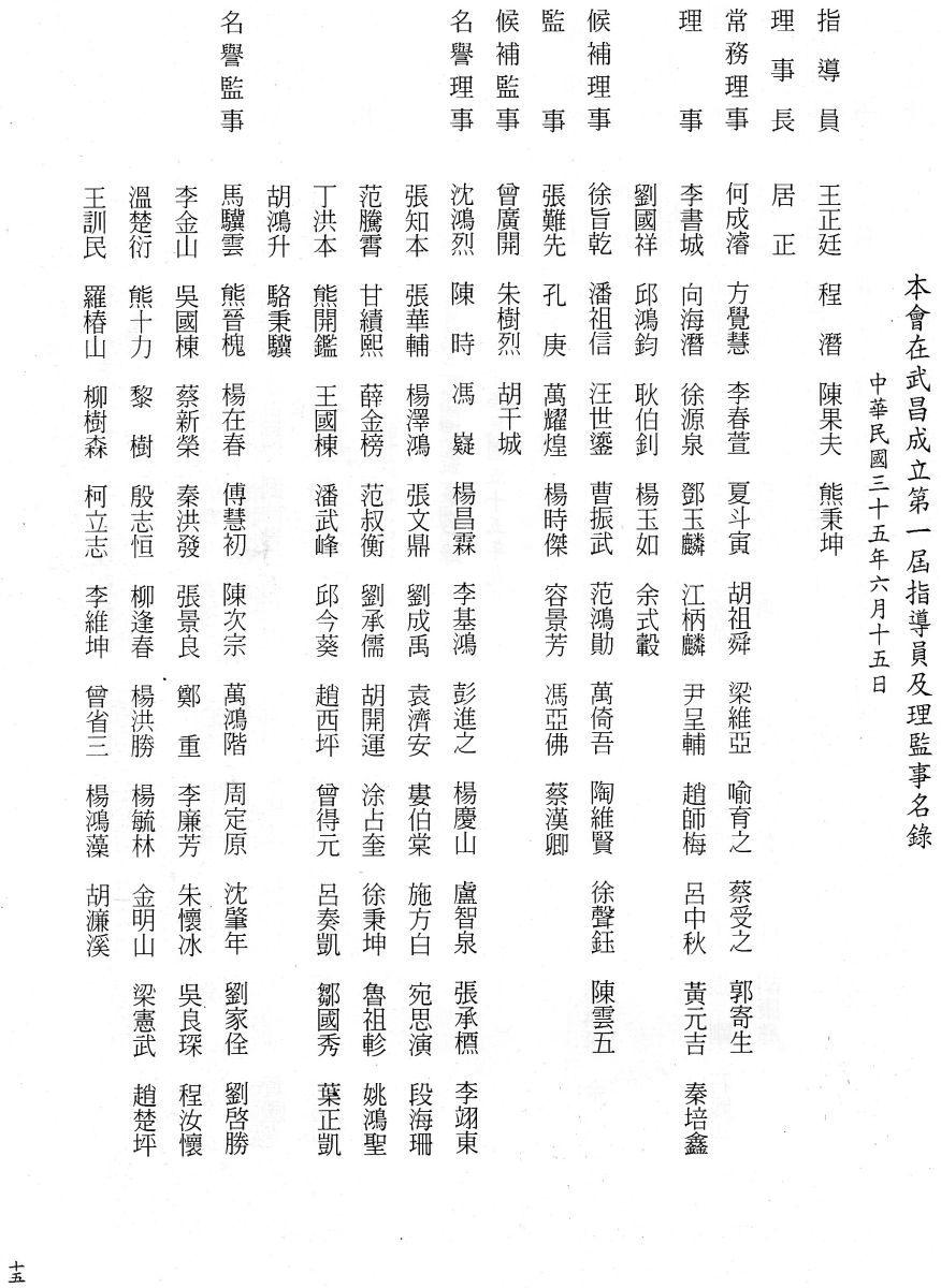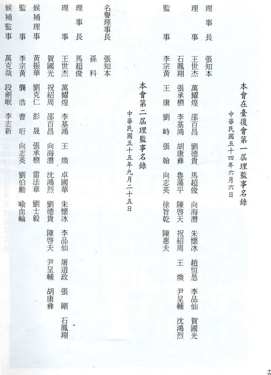 辛亥武昌首義同志會第一至三屆指導員及理監事名錄