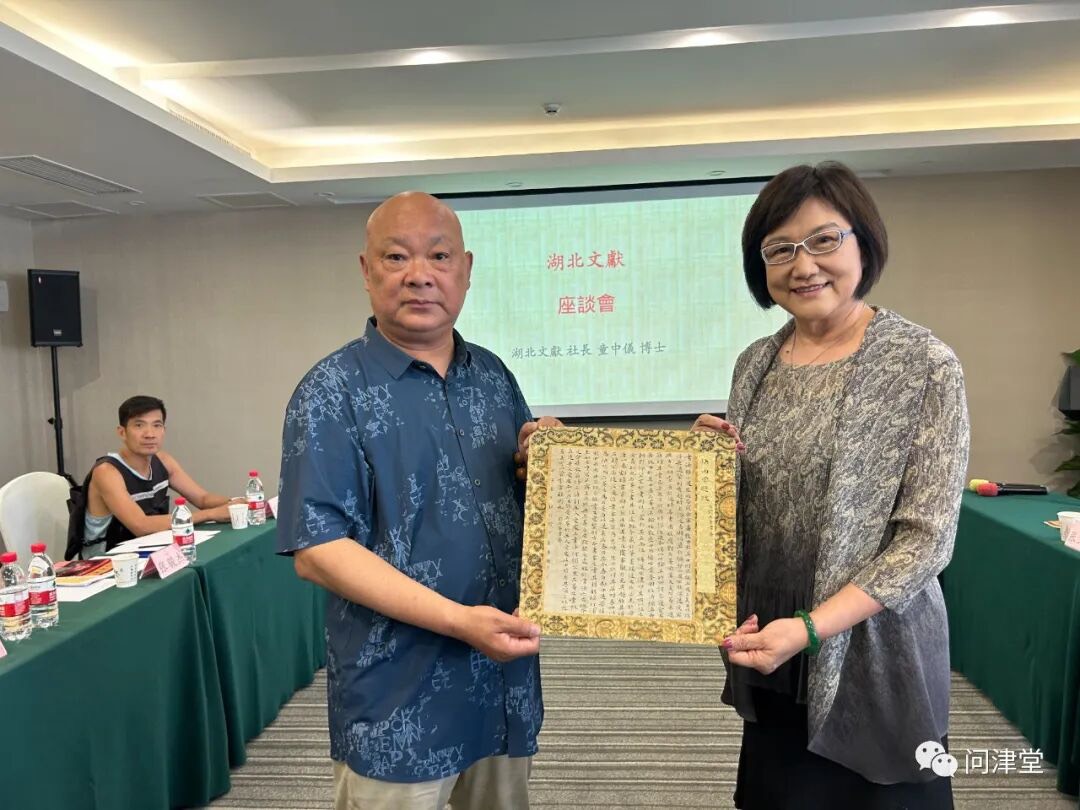 2023年5月29日下午,來自湖北十所高校博士、碩士生導師等學者,受臺灣《湖北文獻》社社長童中儀博士之邀請,在漢口循禮門匯豪大酒店武漢廳舉辦的《湖北文獻》座談會。兩岸學者暢談共話《湖北文獻》雜誌的歷程與未來,進一步完善《湖北文獻》社在湖北高校博士、碩士論文獎學金事宜。參加今天座談會的有:華中師範大學教授李良明、謝從高;湖北大學教授周積明、雷平;華中科技大學教授韓東屏;中國地質大學(武漢)教授陳軍、韓美群;武漢科技大學教授孫君恒;江漢大學教授鄧正兵;中南財經政法大學教授周巍、副教授榮樞;湖北第二師範學院副教授唐克石;湖北省社科院科研人員張駿傑;孔子問津傳說省級代表性傳承人李森林。武漢市台辦副處長胡義、台辦聯絡處負責人肖丹、台辦宣傳負責人張文婧參加了座談會。臺灣《湖北文獻》社社長童中儀、副社長陶德友、副社長周永璋以及武昌首義會(臺灣)和平大使羅維銘先生《湖北文獻》社社長助理林傑仁先生主持了座談會。